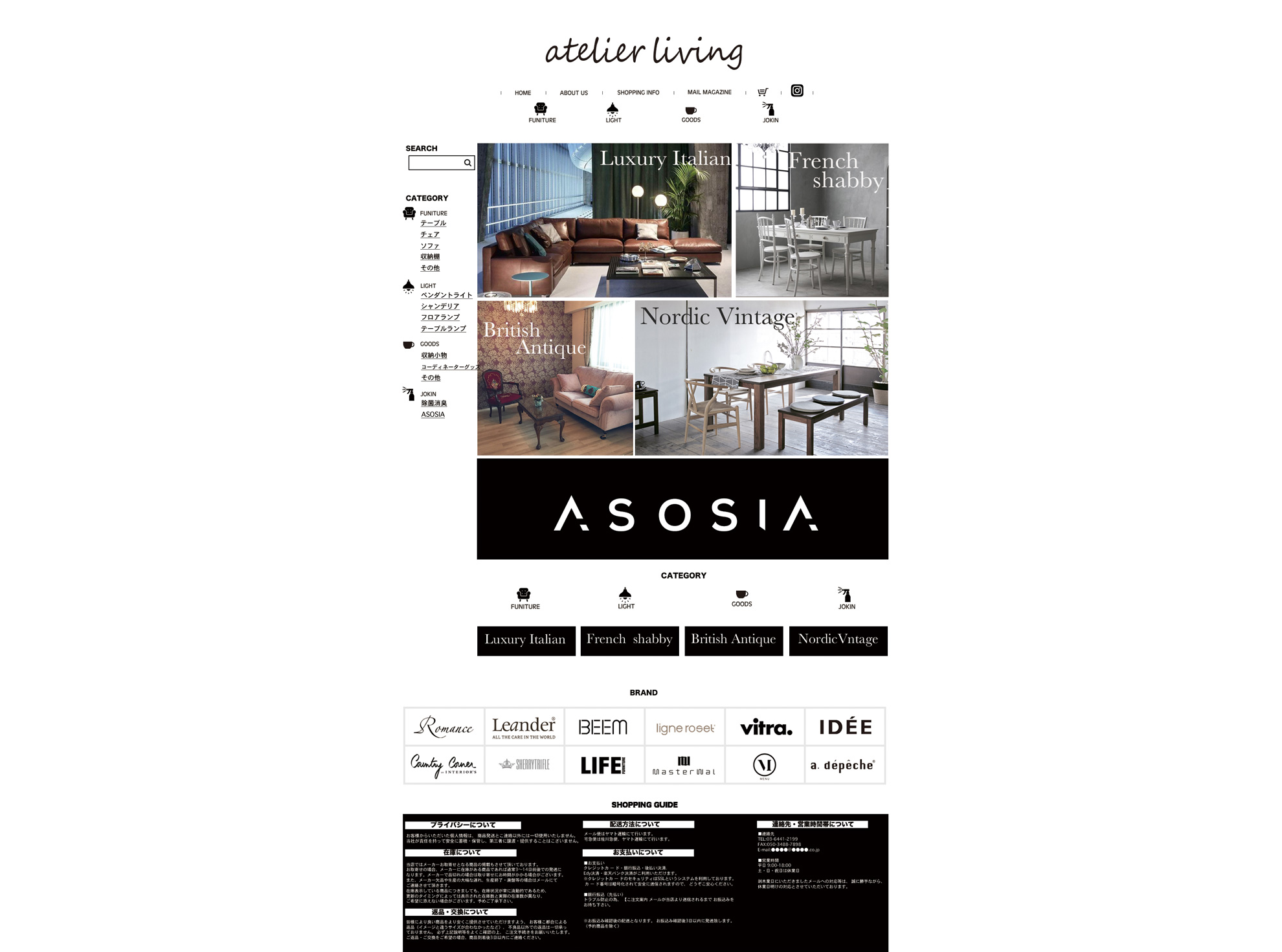 家具・雑貨の通販サイトのTOPページのデザインです。